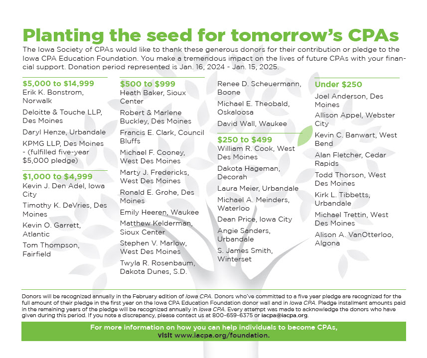 Thank you to these generous donors for their contribution to the Iowa CPA Education Foundation.